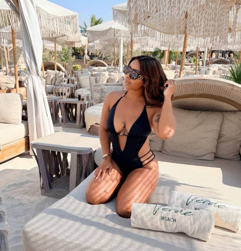 Bioty Thulo Enjoys Verde Beach Dubai in a Chic Swimsuit