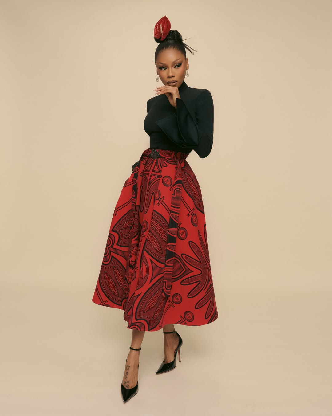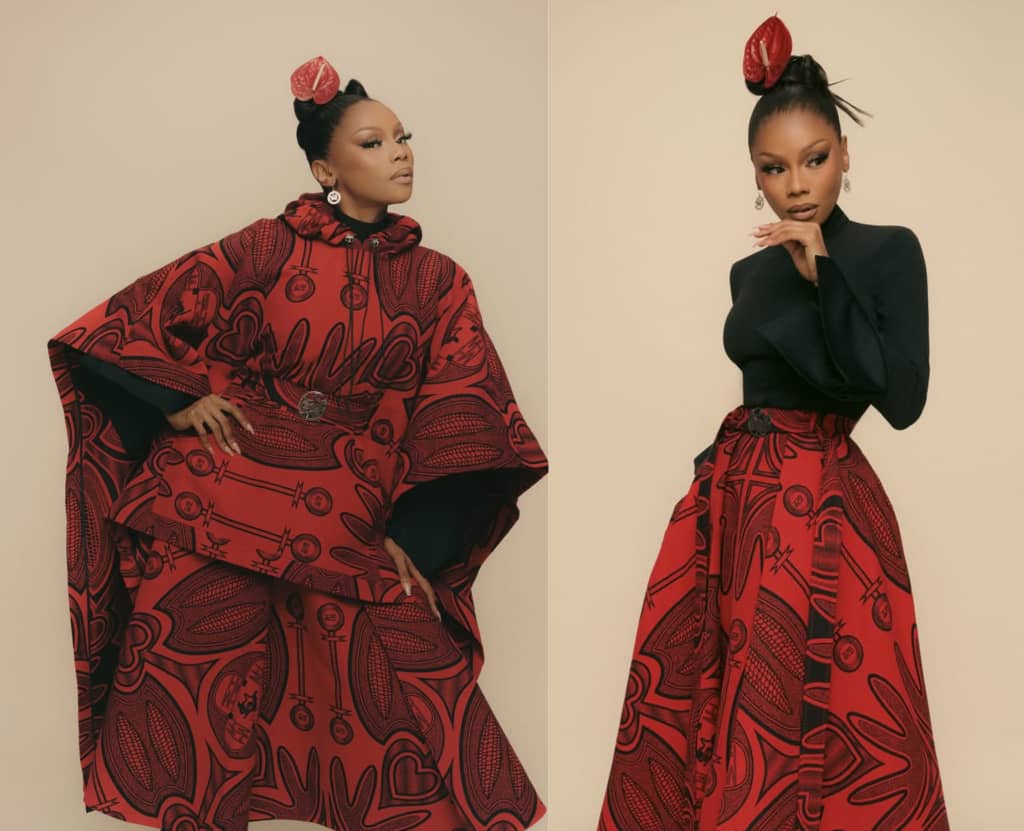 Magugu’s work is often associated with references to heritage and identity, and this capsule continues within that broader thematic direction. In this presentation, Matheba offers two readings of the same pieces, shaped through proportion, layering, and structure rather than any change in construction.