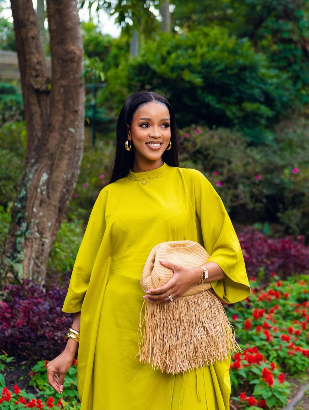 She paired the top with matching wide-leg trousers that carried the same bright yellow tone from head to toe. The trousers were cut in a way that allowed them to flow with every step, brushing against the ground with a softness that matched the airy top. Yellow can sometimes feel too sharp, but on Siphosethu, it felt joyful and grounded.