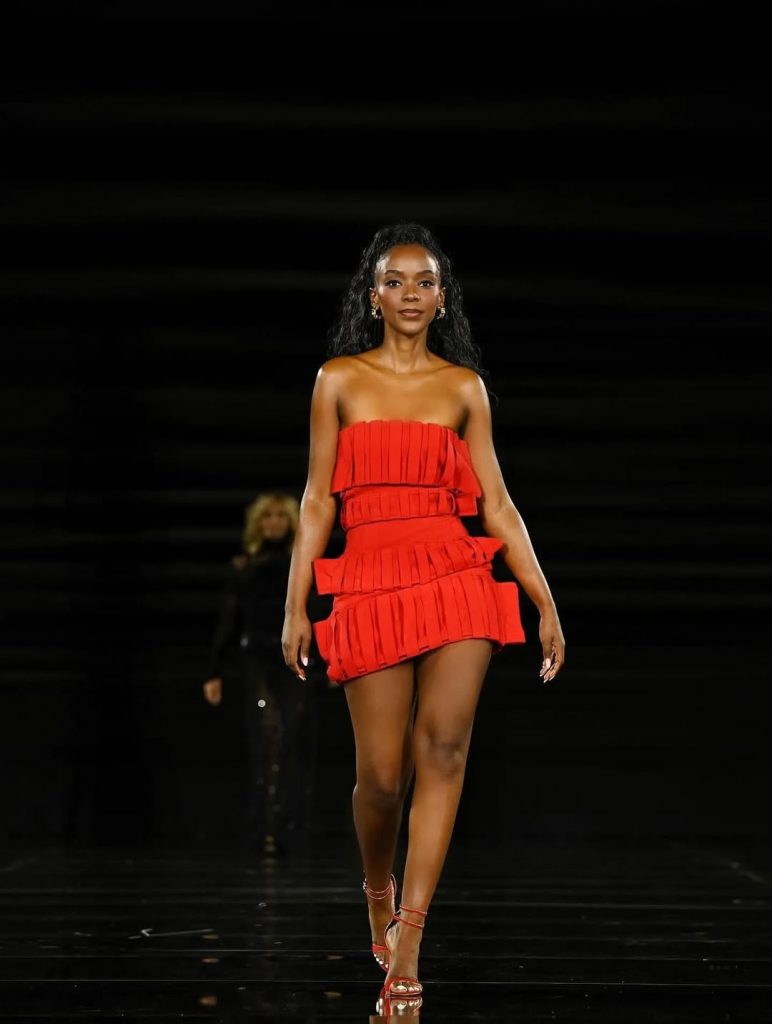 Ama is popular for her role in Blood and Water and she let her fashion versatility speak for itself. At the Paris Fashion Week, she showed her style by blending playful colors with bold accessories. Her youthful styling reflected quiet confidence.