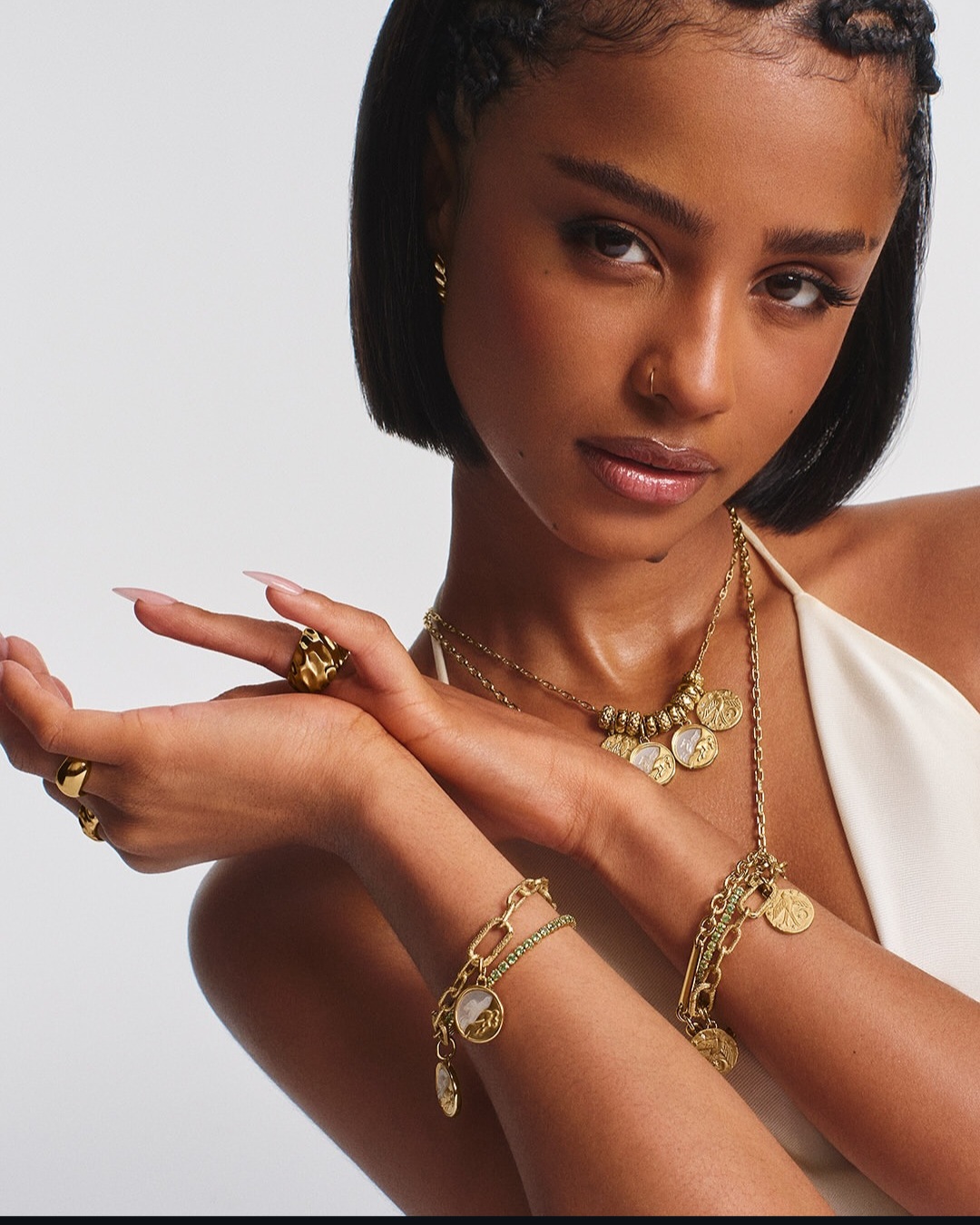 The line comes in silver, gold, and mixed metals, with different shapes and sizes to choose from. Each pendant can be styled on chains to form necklaces, bracelets, or even belly chains, making it easy to wear the collection in your own way. That flexibility might be part of why Tyla feels such a pull toward it. For her, the Talisman collection resonates with her and expresses her unique story.