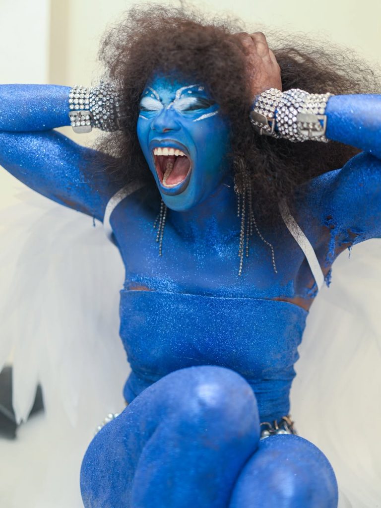 Modiga arrived at the event wearing a bold, futuristic blue ensemble that embodied her creative alter ego, Rha. This look is what people could expect from The Vault.