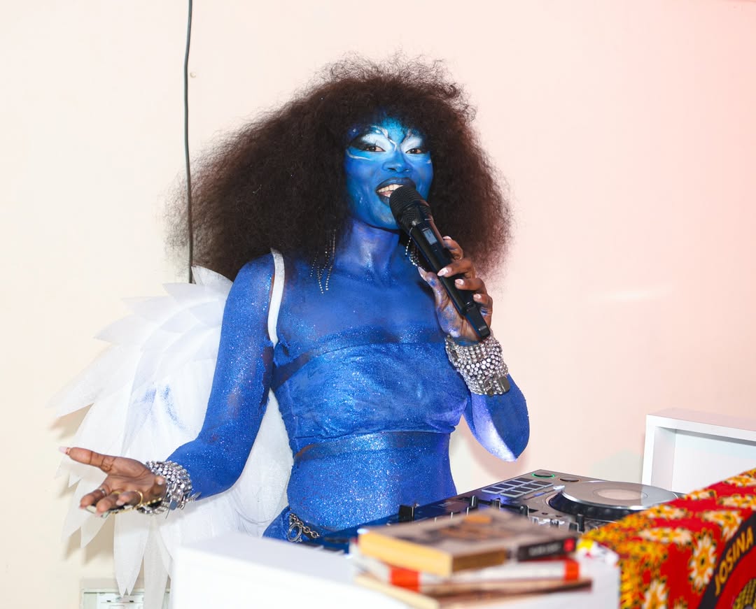 Modiga arrived at the event wearing a bold, futuristic blue ensemble that embodied her creative alter ego, Rha. This look is what people could expect from The Vault.